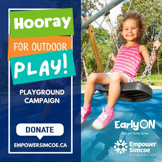The Empower Simcoe Foundation is raising funds for the Hooray for Outdoor Play capital campaign to build a new, fully accessible playground at the EarlyON Child & Family Centre (129 Ferris Lane, Barrie). Beyond recreation, this space will serve as an outdoor learning hub for EarlyON programming and the Ontario Autism Program: Entry to School, supporting young children and their families.